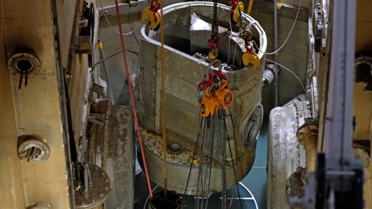 面對高輻射劑量率的挑戰,工人們使用金剛石線鋸切割并成功吊起反應堆容器的下部,將其安全放入重達32,000磅(約14.5噸)的保護桶中,準備運往場外進行專業處置。這一壯舉不僅展示了人類在處理核廢料方面的技術進步,也體現了對環境保護的高度責任感。
