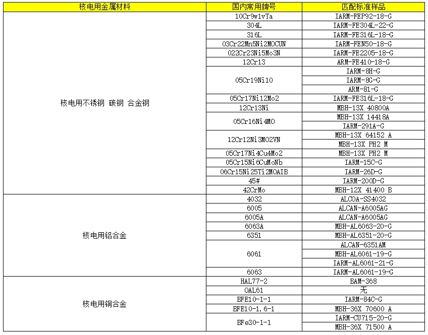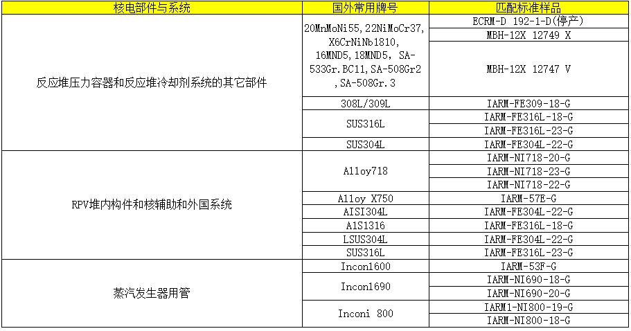 3.國內(nèi)外核電用金屬材料匹配標(biāo)準(zhǔn)品選型表