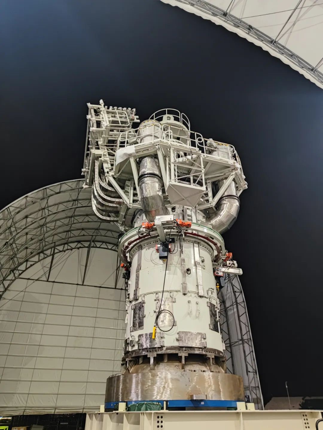 本次吊裝的IHP最大外形尺寸約7.7米×7.6米×15.5米,凈重約為225噸,是3號機組鋼制安全殼頂封頭吊裝就位前要引入的重要設備之一,是國內首個實現現場拼裝后完整交貨吊裝的設備。IHP采用了模塊化的設計理念,即在現場廠房外將控制棒驅動機構、棒位探測器、堆頂通風冷卻設備、主螺栓拆裝工具等功能部件組裝到反應堆壓力容器頂蓋(RVCH)上,大幅度縮短了安裝與商運后大修工期。三門核電3號機組IHP拼裝工作從2024年1月23日啟動,至8月20日全部完成,8月22日00:05開始包裝、封車、場內運輸,8月23日開始連鉤并完成吊裝,歷時約34個小時。