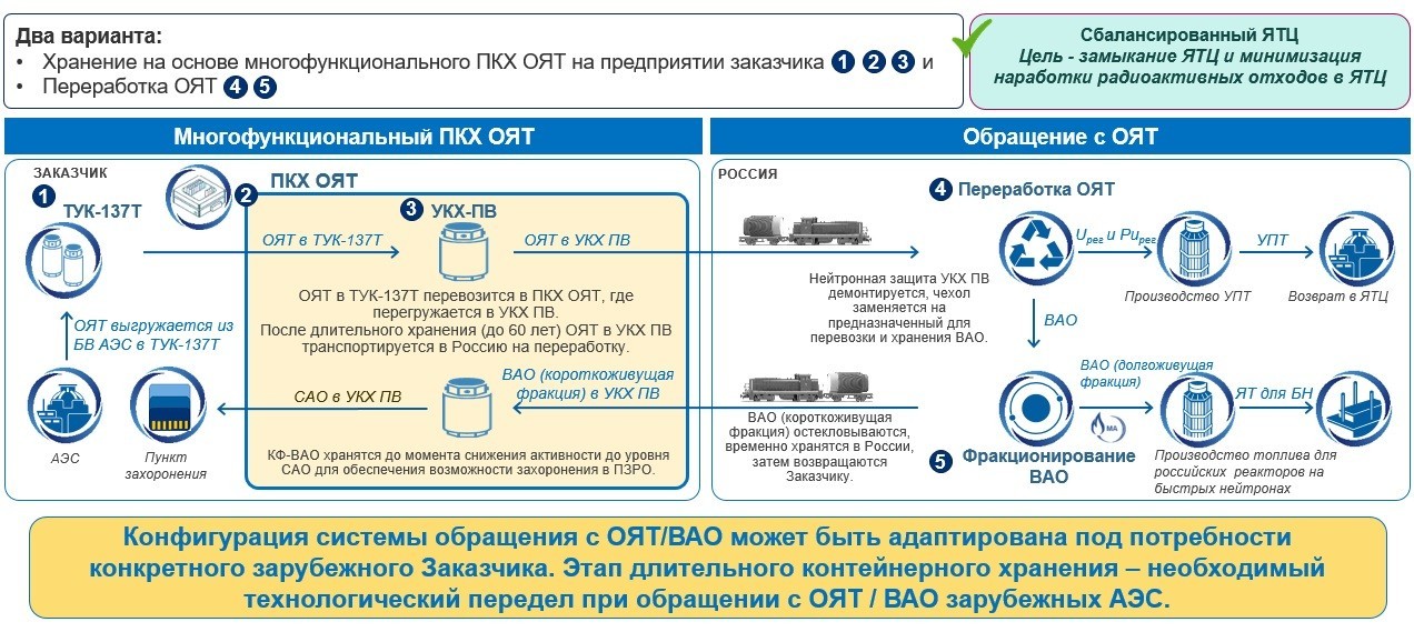 。俄羅斯國家原子能公司的管理層完全理解這項任務(wù)的重要性。重要的是,該項目是Techsnabexport JSC為外國客戶推廣的“平衡核燃料循環(huán)”產(chǎn)品線投資的一部分,旨在最充分地滿足外國客戶對乏燃料處理解決方案的需求。商業(yè)核電站,以及俄羅斯核燃料循環(huán)企業(yè)在兩部分核能系統(tǒng)中的基礎(chǔ)設(shè)施的優(yōu)化開發(fā)和裝載。“平衡乏核燃料”是國外核電站乏燃料管理的新一代概念,包括乏燃料后處理和高放廢物分餾和短壽命Cs-Sr餾分的釋放,需要埋藏在深層地質(zhì)構(gòu)造中。在這種情況下,無論客戶所在國家/地區(qū)采用的乏核燃料管理初始概念如何,都需要長期存儲乏核燃料或高放廢物。
