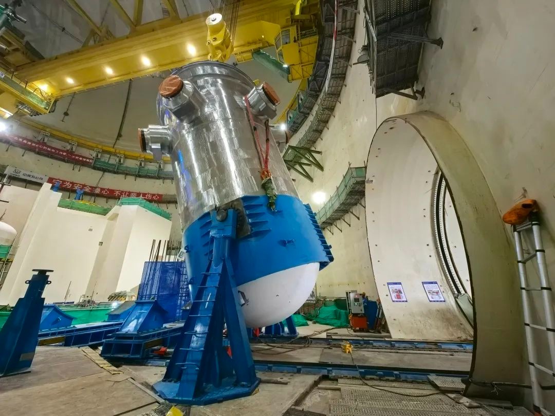 2024年9月19日18時08分,華能海南昌江核電二期工程項目4號機(jī)組反應(yīng)堆壓力容器歷經(jīng)翻轉(zhuǎn)、豎立、吊裝等諸多工序后,歷經(jīng)9個多小時,最終順利就位至壓力容器支承環(huán)上,整個過程安全、質(zhì)量全面受控,實現(xiàn)了又一重大一級里程碑,為后續(xù)4號機(jī)組主管道冷熱段焊接奠定了堅實基礎(chǔ),標(biāo)志著4號機(jī)組進(jìn)入關(guān)鍵部件的全面安裝階段。