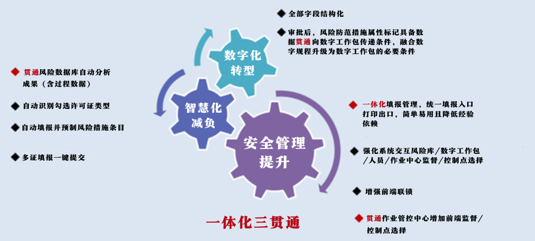 平臺(tái)可實(shí)現(xiàn)基礎(chǔ)工單信息自動(dòng)調(diào)取,工作準(zhǔn)備人不必再跳轉(zhuǎn)切換多個(gè)頁面或系統(tǒng),能夠?qū)崿F(xiàn)單一頁面填報(bào),更加聚焦到風(fēng)險(xiǎn)分析本身。此外,綜合許可證的各個(gè)子證實(shí)現(xiàn)完成準(zhǔn)備、簽出全聯(lián)鎖,能夠有效在前端識(shí)別風(fēng)險(xiǎn)并制定防范措施,阻止風(fēng)險(xiǎn)穿透。