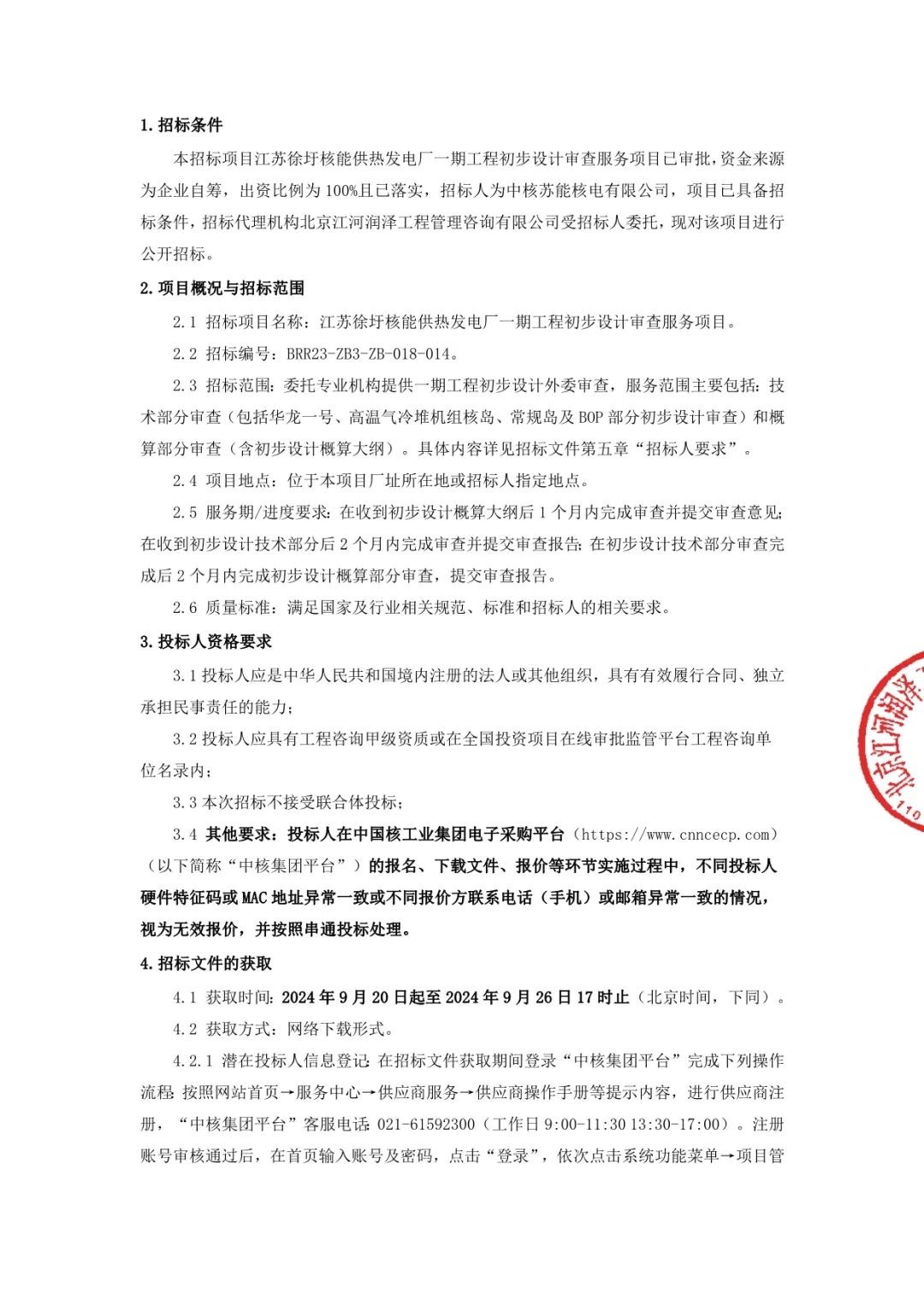 招標項目名稱:江蘇徐圩核能供熱發電廠一期工程初步設計審查服務項目。