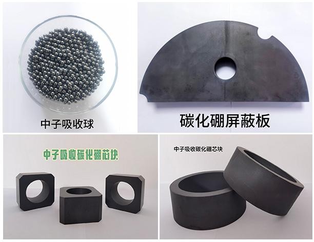 碳化硼(B4C)具有良好的中子吸收能力,其中子俘獲截面積高,俘獲能譜寬,10B的熱截面高達3750barn(barn-核反應的截面單位, 1.0*10-24cm2),僅次于釓Gd、釤Sm、鎘Cd等少數幾種元素。同時,相對于純元素B和Gd而言,B4C造價低,不產生放射性同位素,二次射線能量低,廢料易于處理;而且耐腐蝕,熱穩定性好,是國際上普遍接受的快中子吸收材料。目前廣泛用于核工業原子能反應堆的屏敝板和中子吸收芯塊。