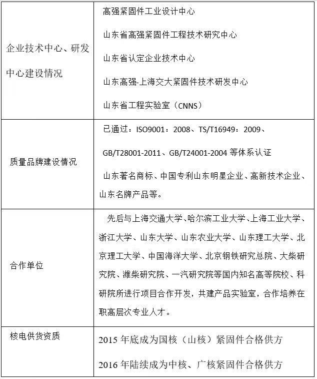 從2015底至今陸續成為國核、中核集中廣核三大核電集團緊固件供應商目前未接到客戶投訴。