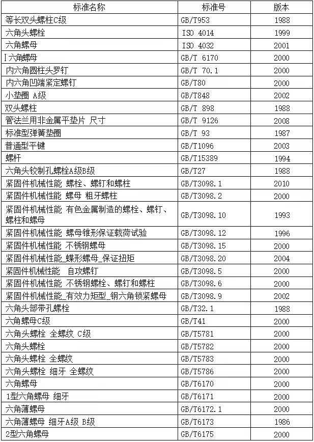 我司生產中常用的主要標準: