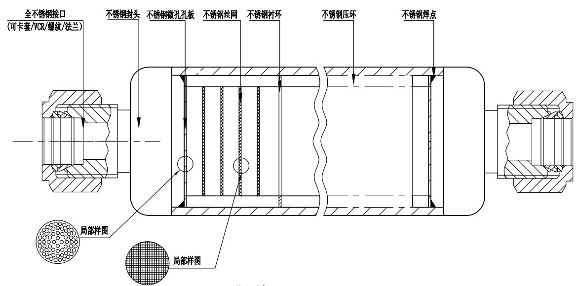 【主要特點(diǎn)】: *采用了全金屬的濾芯,不銹鋼過(guò)濾器耐高溫,最高耐溫達(dá)800℃。 *濾芯采用高真空粉末冶金而成過(guò)濾精度最高可達(dá)0.3μm。 *由于采用了金屬芯,過(guò)濾器可以反吹除所阻擋的塵埃,可長(zhǎng)期不用更換濾芯反復(fù)使用。 *低泄漏率(真空氦檢可達(dá)10-10Pa.m3/s)。 *高耐壓,最大可達(dá)12.0MPa。