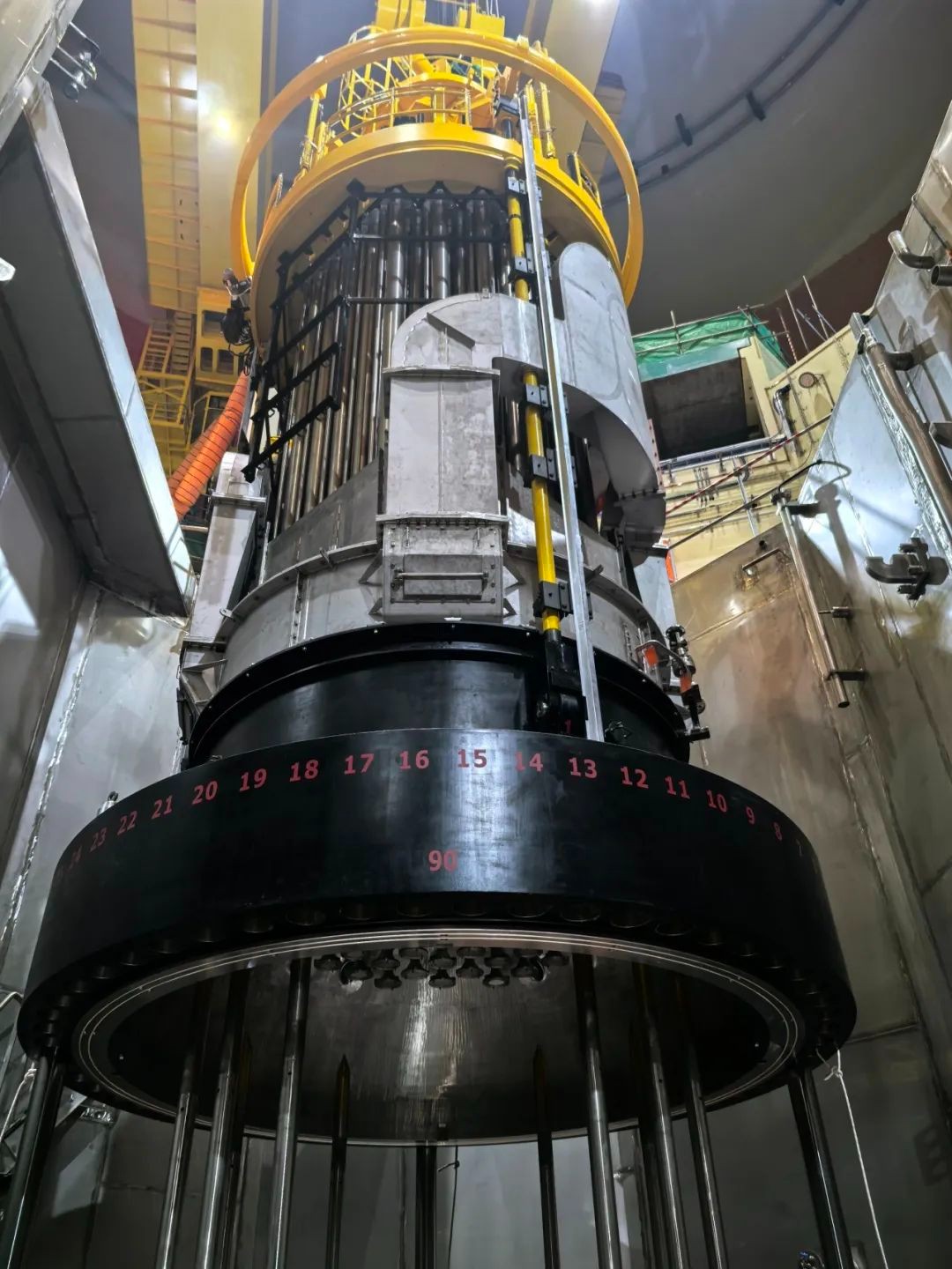 為保證三澳核電項目1號機組反應堆壓力容器頂蓋能順利完成冷試扣蓋,項目部在蒼南業主單位、中廣核工程公司、核鵬監理單位領導的共同參與引領下進行了冷試扣蓋工作沙盤推演、先決條件梳理,制定了冷試扣蓋專項行動項跟蹤清單及專項施工計劃,同時組織日例會進行跟蹤,保質保量先后完成了主設備部內部清潔檢查、主螺栓孔清潔及過規檢查、上下部堆內構件入堆、壓力容器頂蓋吊裝就位、整體螺栓拉伸機組裝調試及運輸吊裝等關鍵工作,最終,采用整體螺栓拉伸機有條不紊地完成了58根主螺栓整體拉伸工作,順利完成冷試扣蓋節點。