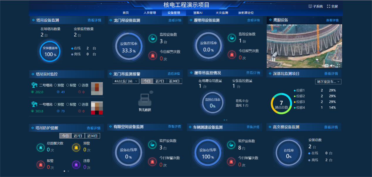 品茗核電工程智慧工地解決方案,主要面向核電項目建設單位和施工單位,綜合運用AI視頻監控、大型機械綜合管理系統、智能車輛測速、工程影像管控、放射源北斗定位、紅外火災監測、無人機智能巡飛等,對現場人員、安全、質量、進度等進行全面管理,保障核電工程施工的有序和高效運行。