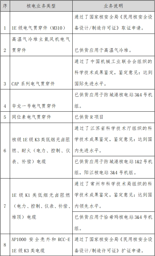 核電相關(guān)產(chǎn)品和業(yè)務(wù)范圍