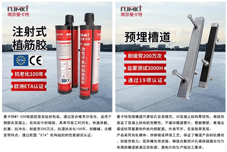 南京曼卡特科技有限公司成立于2004年,是一家專業從事高科技錨固、加固材料研發、生產、銷售,并為項目提供設計構思、施工方案和技術指導等一站式服務的高新企業。