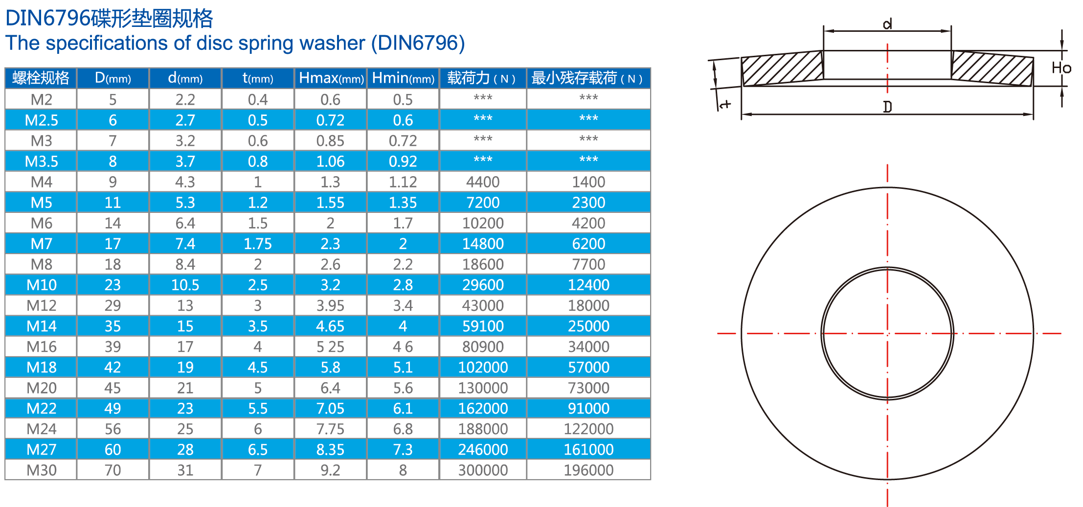 【產品描述】: 碟形彈簧墊圈又稱螺栓連接用碟形彈簧墊圈,依照DIN6796制造生產。用于各種強度螺栓、螺釘的連接,對于預防拉力的松弛、對易損件的磨損及蠕變,熱膨脹收縮及密封件的壓力起到補償作用。