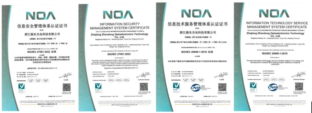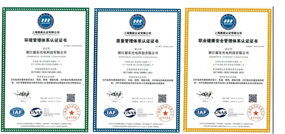 公司先后通過了ISO9001、ISO14001、ISO45001管理體系認(rèn)證,掌握了產(chǎn)品核心技術(shù)并擁有全部自主知識(shí)產(chǎn)權(quán),已獲得發(fā)明專利、實(shí)用新型專利和軟件著作權(quán)等三十余項(xiàng)。公司先后參與了國(guó)家標(biāo)準(zhǔn)GB21197-2007《線型光纖感溫火災(zāi)探測(cè)器》、GB16280-2014《線型感溫火災(zāi)探測(cè)器》、團(tuán)體標(biāo)準(zhǔn)《城市綜合管廊檢測(cè)技術(shù)標(biāo)準(zhǔn)》、《高壓電纜在線監(jiān)測(cè)裝置運(yùn)行維護(hù)導(dǎo)則》、《公路隧道火災(zāi)自動(dòng)報(bào)警系統(tǒng)技術(shù)條件》、《火災(zāi)自動(dòng)報(bào)警系統(tǒng)設(shè)計(jì)規(guī)范》及系列地方標(biāo)準(zhǔn)的編制。
