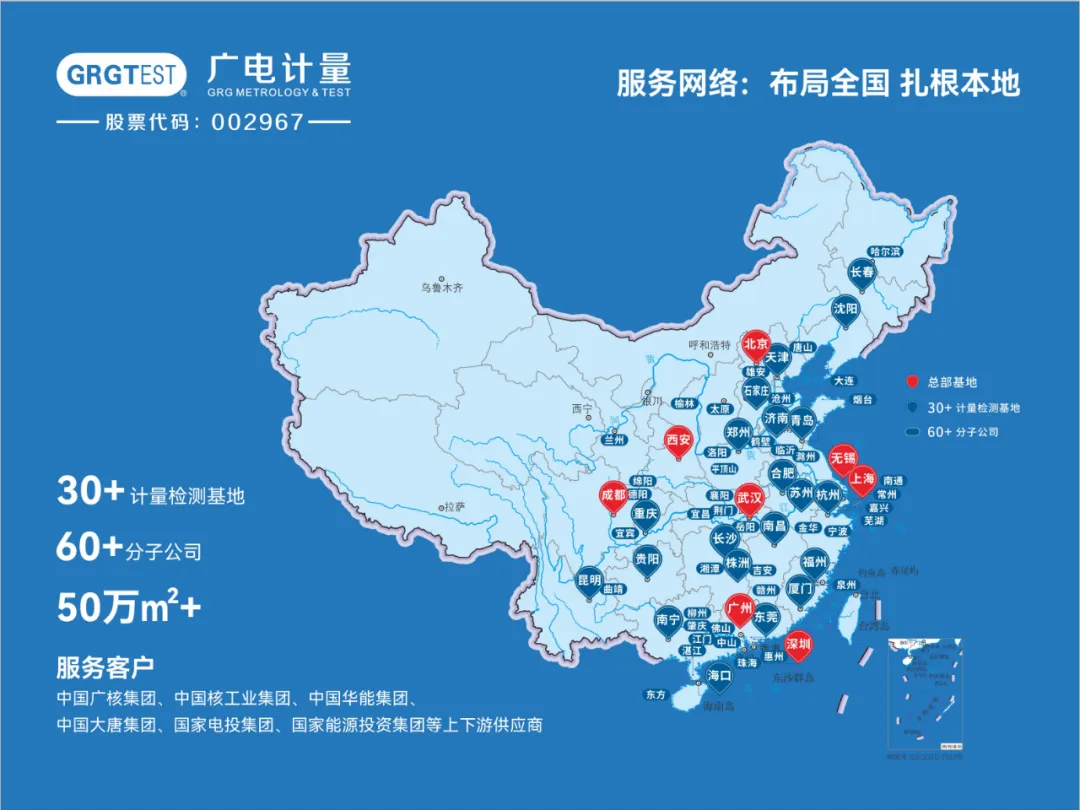 廣電計量是廣州數字科技集團旗下高科技上市企業,創立于2002年,是國內領先的國有第三方計量檢測上市企業,面向特殊裝備、航空及低空經濟、智能網聯汽車、數字經濟、新能源及核電等國家戰略性產業領域,構建了“計量檢測+科研服務+評價咨詢+規劃設計+認證”一站式綜合技術服務能力,其中計量校準、可靠性與環境工程、電磁兼容檢測業務的經營規模和服務能力居行業前列。在核電領域,廣電計量圍繞國家能源戰略,聚焦核電產業上下游需求,構建了設備原材料、元器件及零部件的環境應力篩選、可靠性試驗與壽命評估、電磁兼容、仿真分析等綜合技術服務能力,在核島、常規島的關鍵設備上的檢測業務持續突破,助力核電產業綠色、安全、高質量發展。