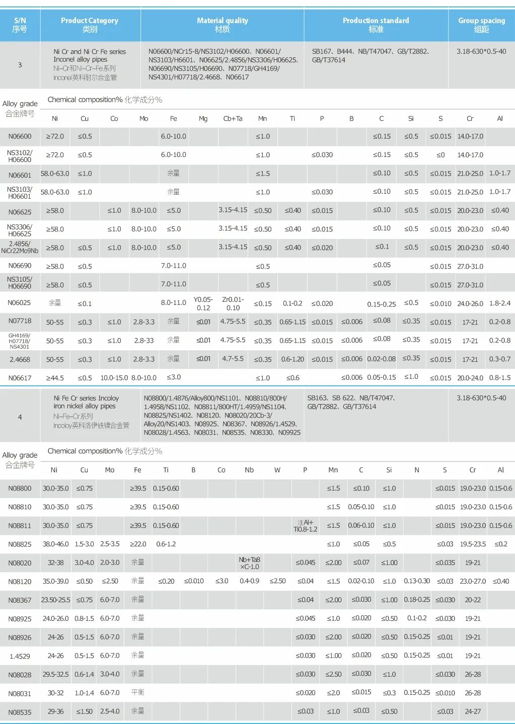 鈦及鈦合金管;耐蝕合金管;哈氏合金管