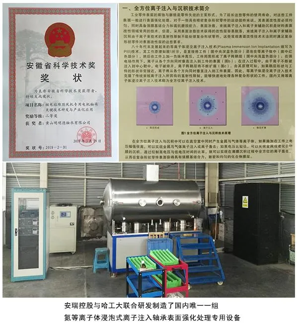 經(jīng)杭州試驗(yàn)中心測(cè)試,經(jīng)離子注表面處理的軸承壽命可達(dá)12L10以上。目前實(shí)況使用壽命1200小時(shí)以上,是進(jìn)口軸承壽命的3倍左右,完成了出口替代。