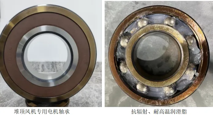 1、CAP1000、CAP1400堆頂風(fēng)機(jī)電機(jī)用軸承:【產(chǎn)品描述】: 堆頂風(fēng)機(jī)立式安裝,配套電機(jī)軸伸安裝風(fēng)機(jī)輪轂,葉輪等部件,電機(jī)軸承需承受一定的軸向力;且能在環(huán)境溫度38℃~ 82℃情況下正常運(yùn)行,要求2年內(nèi)不損壞,不加油脂,不維護(hù),并能承受一定輻照劑量。考慮到核工程的核污染和更換、維修的危險(xiǎn)性,建議一個(gè)大修內(nèi)堆頂風(fēng)機(jī)電機(jī)用軸承整臺(tái)更換。