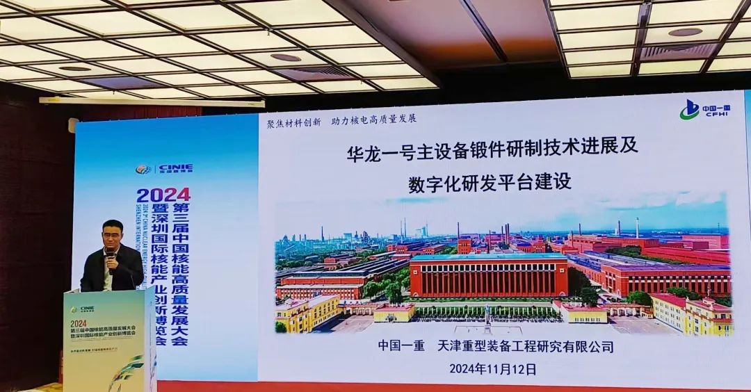 一重天研總經(jīng)理?xiàng)顣杂硎苎黝}為《“華龍一號(hào)”主設(shè)備鍛件研制技術(shù)進(jìn)展及數(shù)字化研發(fā)平臺(tái)建設(shè)》主題演講。