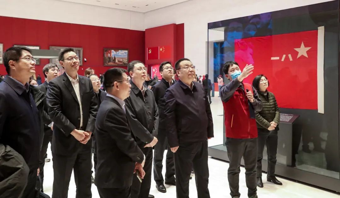 儀式開始前,雙方一道參觀了正在國家博物館舉辦的《風展紅旗如畫——館藏紅色經典文物展》,并就未來進一步加強合作進行了友好交流。