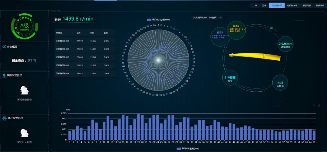 核電汽輪機組末級葉片長、工況嚴酷,汽輪機葉片在線監測系統可對末級葉片的振動情況進行實時監測和預警,便于葉片健康狀況評價、汽機運維方式優化。