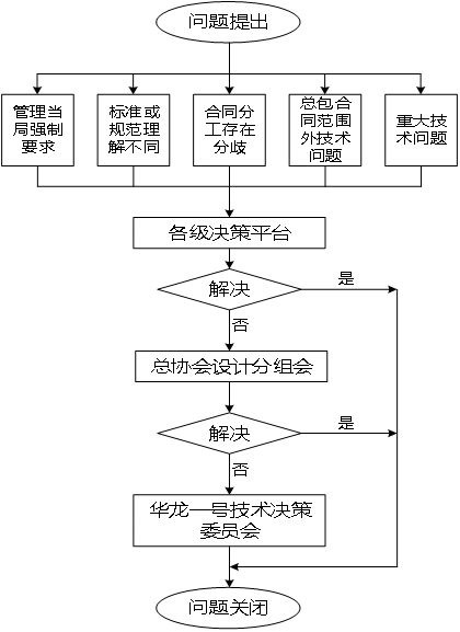 “華龍一號”示范工程設計變更多、首次設備制造帶來的反復計算迭代與驗證多,根據分工,合同范圍內的技術決策依靠總承包商內部技術決策流程開展,重大事項通過技術決策委員會開展,綜合決策以項目總經理協調會決議為準。