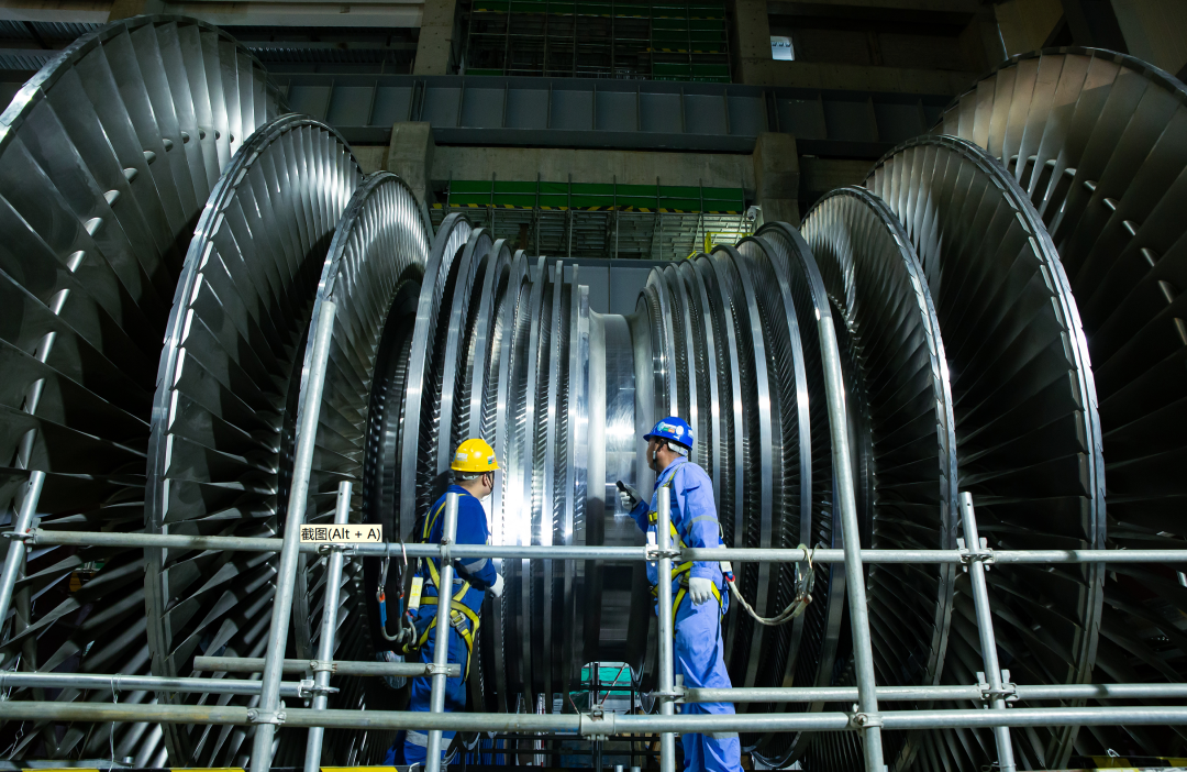工作人員正在檢查一號機(jī)組汽輪機(jī)轉(zhuǎn)子。