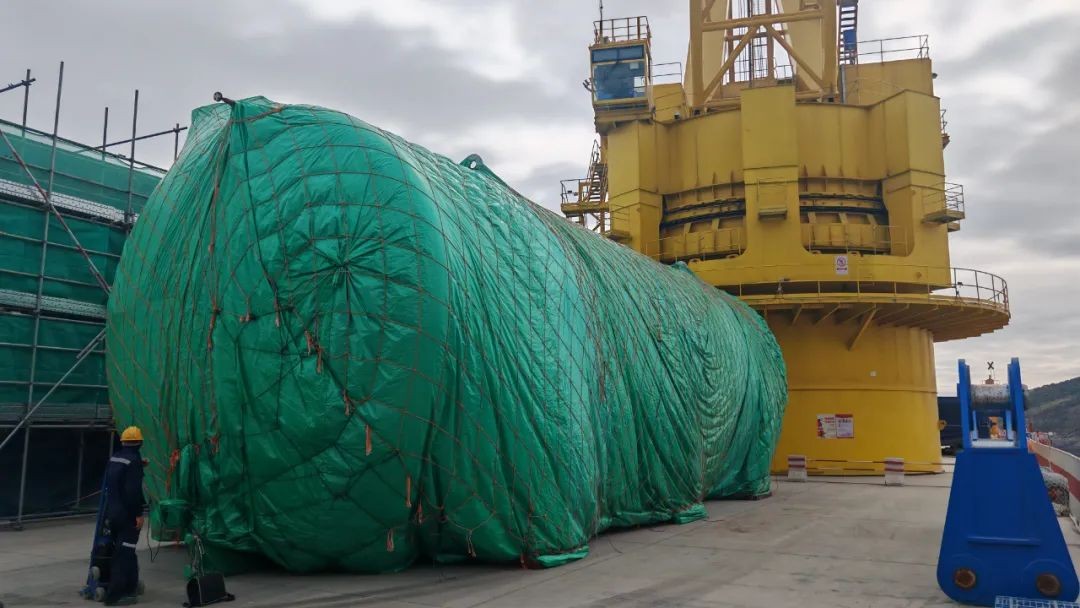 12月21日,由蘇州海陸重工股份有限公司承制的中國廣核集團“華龍一號”首個備用應急柴油發電機子項主貯油罐從蘇州出發,經過2天的海上運輸,于12月23日順利抵達三澳核電基地海域,經過2天的航道清理等準備工作后,于12月25日在大件碼頭開展卸貨吊裝工作,為備用應急柴油發電機子項后續+0米以上的土建施工以及設備安裝工作的順利開展提供了有力的支持和保障。