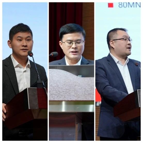 從左至右依次為:合肥合鍛智能制造股份有限公司尖端制造部項目總監劉瓊、二重(德陽)重型裝備有限公司工藝研究所副所長胡余平、無錫派克新材料科技股份有限公司副總經理兼技術研究院常務副院長丁佐軍