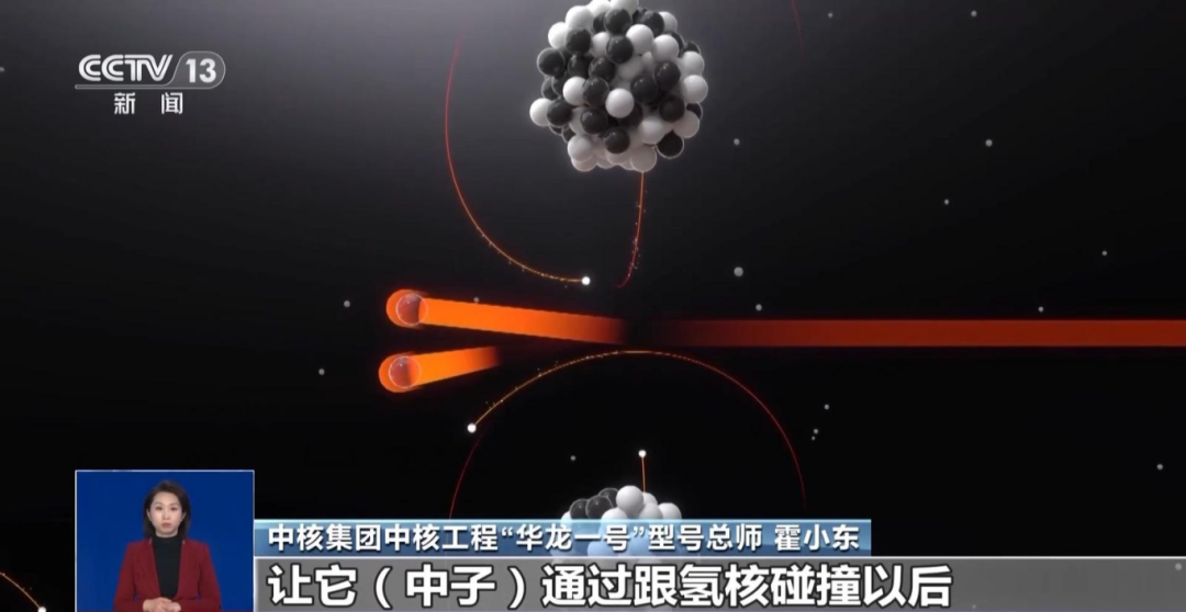 中核集團中核工程“華龍一號”型號總師 霍小東:輕水堆它慢化能力很好。反應堆需要中子去跟核燃料發生裂變反應,剛從裂變出來的中子速度非常快,它跟核燃料發生反應的可能性稍微差一點。所以說要用一種慢化劑,讓中子通過跟氫核碰撞以后,這個中子本身損失能量了以后,它的速度就慢了,跟燃料發生反應的可能性就大了,所以說對于燃料的利用率提高了。