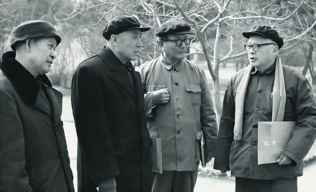 ③1978年,錢學(xué)森(前排左四)訪問核工業(yè)西南物理研究院,核物理學(xué)家、核工業(yè)西南物理研究院名譽(yù)院長(zhǎng)李正武接待。