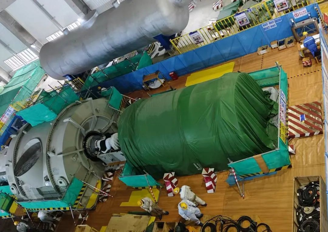 2025年1月17日4時28分,隨著常規島主行車鉤頭緩緩落下,汽輪機低壓外缸穩穩就位、扣合,至此全球首堆“玲龍一號”常規島汽輪機扣蓋節點圓滿完成,標志著全球首堆常規島安裝步入新階段,是繼備柴首啟的又一里程碑節點,2025開年,玲龍一號點燃了“雙響炮”。