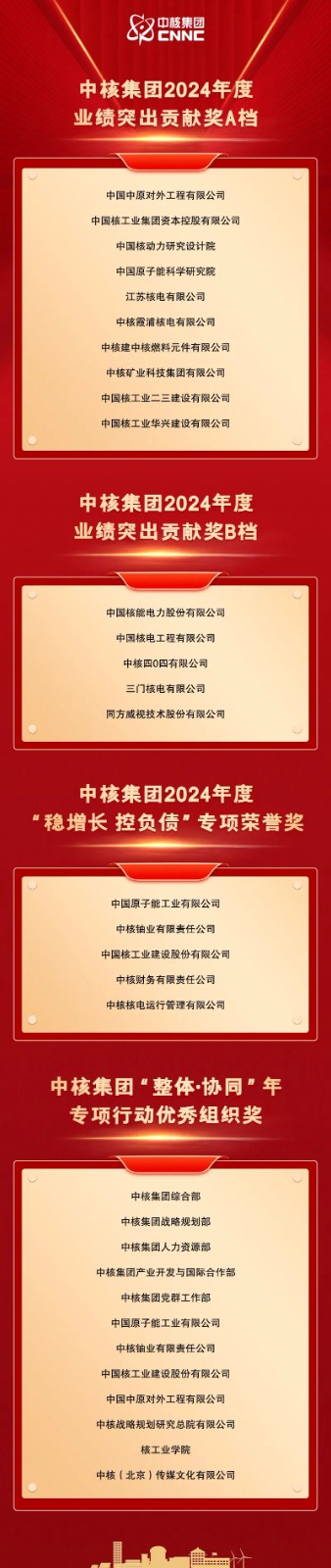 會議對集團公司2024年度業績突出貢獻獎、“穩增長控負債”專項榮譽獎、國家科技獎、集團公司科技獎特等獎、國際標準牽頭編制單位、“整體?協同”年專項行動優秀部門、單位和引才伯樂獎等進行了表彰。