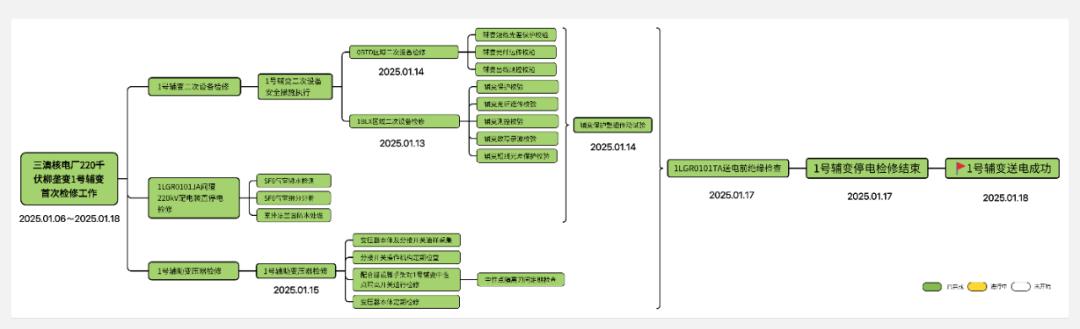 220kV輔助電源系統不僅承擔著機組建設期間的調試供電任務,同時作為機組商運期間的核安全保障用電,對于核電站的安全穩定運行、區域電力的穩定供應保障具有重要作用。本次220千伏1號輔變首次檢修工作不僅有效落實了重大設備的可靠性保障與質量提升,同時也為后續專項大型檢修的標準化運作樹立了良好典范。