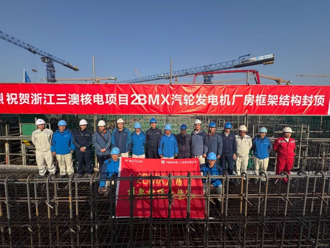 近日,三澳核電項目2號機組常規島汽輪發電機廠房框架結構整體封頂完成,標志著2號常規島施工主線將由混凝土框架施工轉入鋼結構安裝階段,為后續常規島主廠房的汽輪機、發電機等設備引入創造了先決條件。