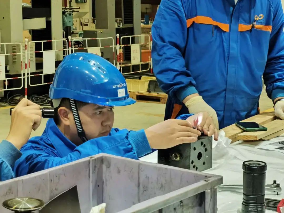 在對蓄能器進行全檢時,項目組蘇達秋發現蓄能器底部提升閥安裝困難,于是立即停下工作開始逐一檢查。在以毫米為單位的排查中,發現了蓄能器底部有一個0.5毫米的突起二級臺階,讓密封圈填充率超100%,超出標準。隨后,蘇達秋迅速選定處理方案,徹底消除了該隱患。