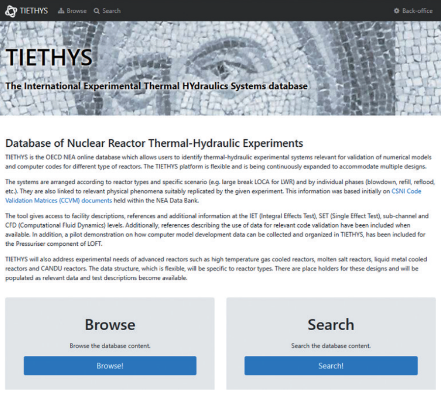 反應堆熱工水力試驗臺架是采用比例模化方法對反應堆進行模擬的實驗裝置,用于分析反應堆正常運行及事故瞬態下的熱工水力現象。試驗臺架實驗數據可為核電廠的系統設計和安全分析,以及程序的驗證和評估提供支持。近幾十年來,各國建設了眾多反應堆熱工水力試驗臺架。同時,為了更好地收集、整理和保存熱工水力試驗臺架相關的實驗信息與實驗數據,國際上已經建立了一些專門的數據庫,例如TIETHYS(The International Experimental Thermal Hydraulics Systems Database)、STRESA(Storage of Thermal Reactor Safety Analysis Data)、SANIS(Simulation and Experimental Analyses Network Information System)等。