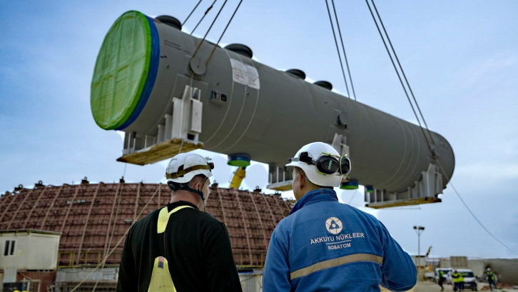 首臺(tái)大型設(shè)備——給水儲(chǔ)備罐已安裝到土耳其阿庫(kù)尤核電站3號(hào)機(jī)組汽輪機(jī)房?jī)?nèi)。
