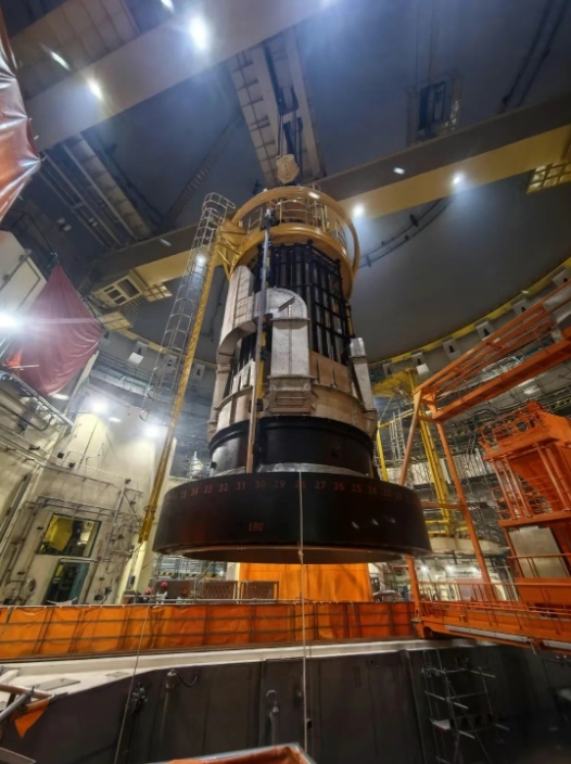 反應堆壓力容器熱試關蓋工作包括準備階段和實施階段。準備階段,蒼南核電自主開展主螺孔清潔檢查,配合完成主螺孔堵塞解體檢查、堆內構件及吊具清潔檢查、壓力容器頂蓋及吊具清潔檢查等工作。實施階段,蒼南核電聯合中廣核工程、中廣核運營、中核五公司等單位集中精干力量組建“關蓋”團隊,克服現場物資運輸通道堵塞、設備防異物壓力大、部分專用工具使用經驗不足等困難,順利完成堆內構件插堆、反應堆壓力容器頂蓋扣蓋、主螺栓拉伸等工作。