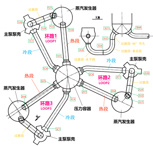 核島主管道被稱為核蒸汽供應系統輸出堆芯熱能的“大動脈”,其作用如同人體血液循環系統,承擔著輸送堆芯熱能、保障反應堆安全運行的核心功能。4號機組共設置3個環路、24道焊口,每條環路由熱段(反應堆壓力容器與蒸汽發生器連接段)、冷段(反應堆冷卻劑泵與反應堆壓力容器連接段)及過渡段(蒸汽發生器與反應堆冷卻劑泵)組成,將反應堆壓力容器、蒸汽發生器、反應堆冷卻劑泵連接成閉合回路。
