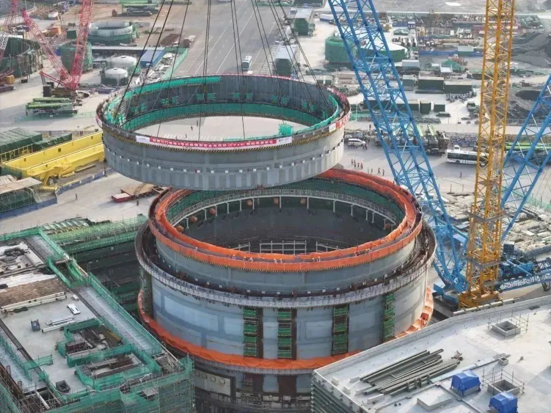11漳州核電3號(hào)機(jī)組鋼襯里筒體全部吊裝完成