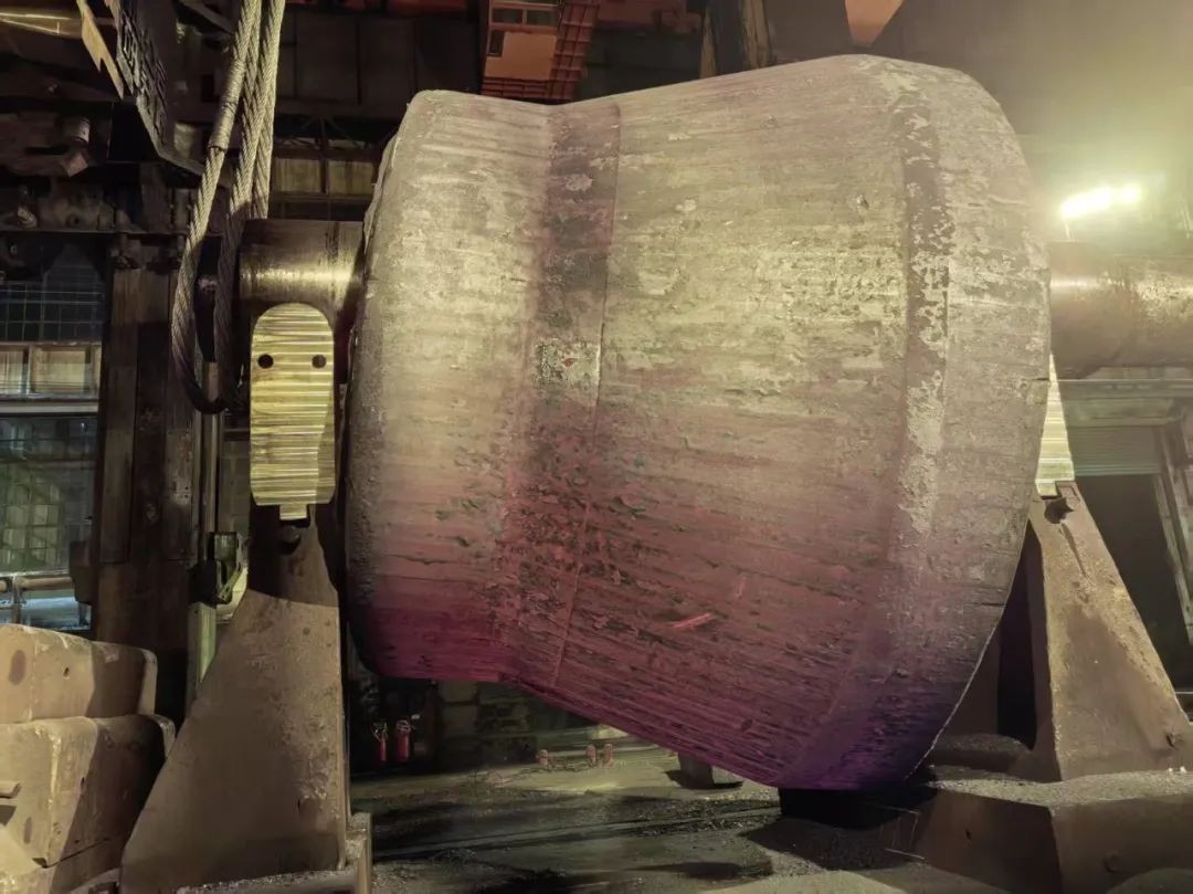 錐體鍛件為特大異形件,采用特殊工裝模具多火次成形,具有裝爐起吊難、出爐夾橢風(fēng)險(xiǎn)高、上下馬架時(shí)多行車多工裝聯(lián)動(dòng)操作復(fù)雜性高的特點(diǎn)。為此,鍛件分廠在鍛造前針對(duì)性的進(jìn)行了全流程冷試聯(lián)動(dòng)操作演練。在鍛壓過(guò)程中,大鍛所、鍛件分廠技術(shù)骨干全程跟蹤,及時(shí)做好現(xiàn)場(chǎng)服務(wù);在成形的關(guān)鍵階段,各條線加班加點(diǎn),科學(xué)調(diào)配早中夜班連續(xù)作戰(zhàn);現(xiàn)場(chǎng)操作人員在緊湊的生產(chǎn)中高效完成工裝準(zhǔn)備,依據(jù)關(guān)鍵控制點(diǎn)觀測(cè)動(dòng)態(tài)調(diào)整鍛造操作過(guò)程,并在鍛件高溫情況下進(jìn)行異形鍛件多點(diǎn)位的尺寸測(cè)量,全力保障生產(chǎn)進(jìn)度,確保了核電攻關(guān)產(chǎn)品的順利生產(chǎn)。