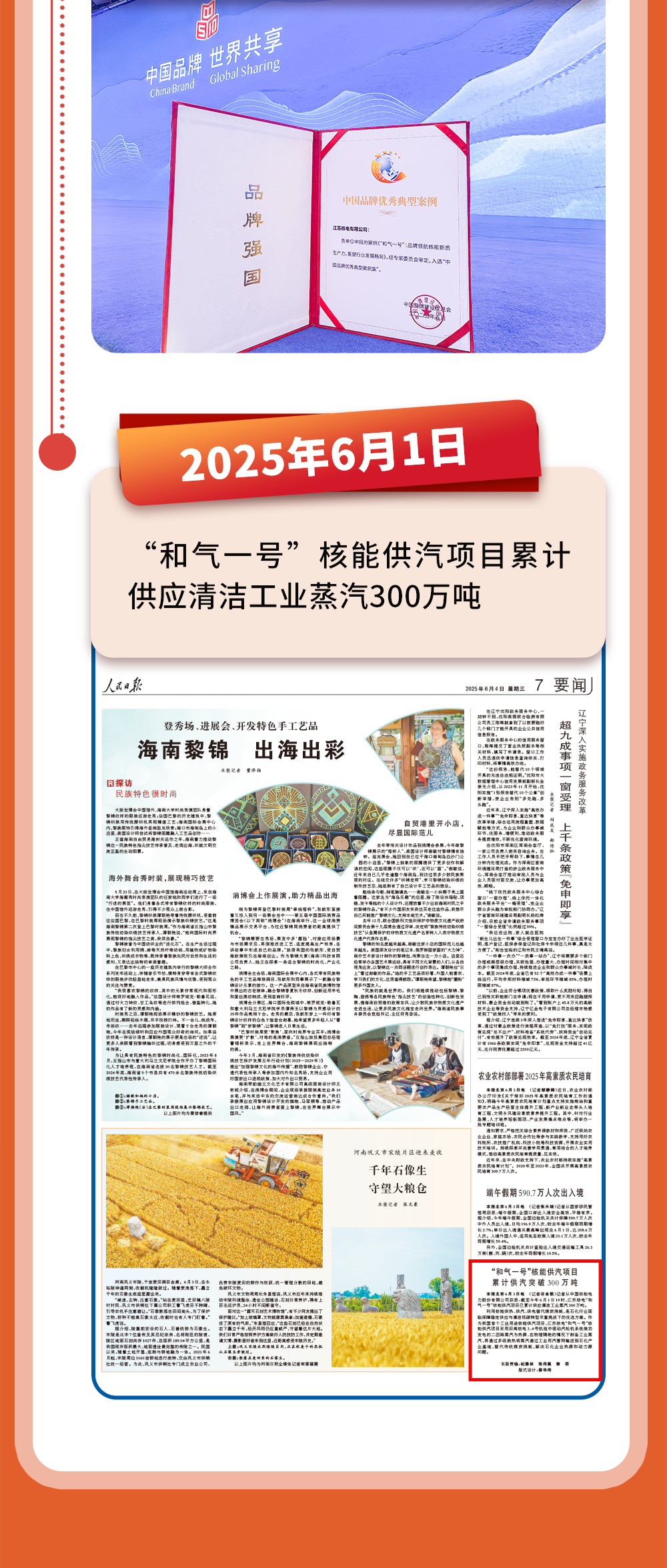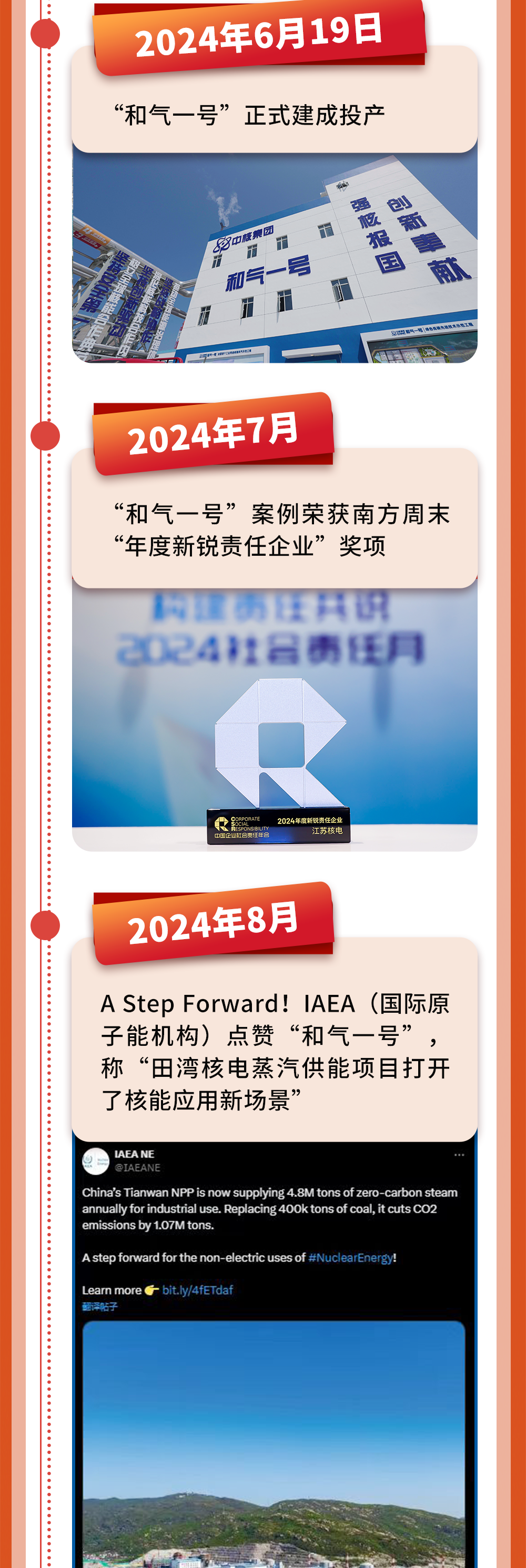 “和氣一號”的成功運行意味著我國核能綜合利用在走過單一發電、居民供暖階段后,進入到工業供汽領域。一年來,“和氣一號”安全穩定運行,通過不斷進行經驗積累與技術突破,為后續其他核電項目的核能工業供汽之路提供了示范樣板。