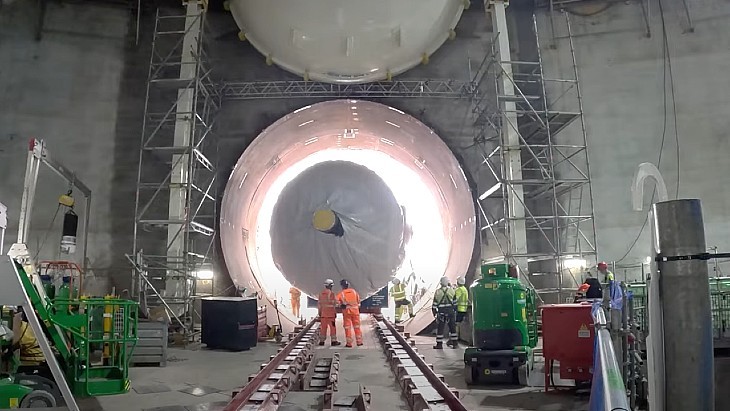 英國欣克利角 C 核電站一號機組已安裝四臺 520 噸蒸汽發生器中的第一臺。