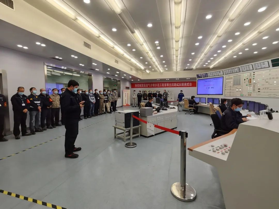 在示范工程建設過程中,中核能源始終把科技創新擺在戰略核心位置,主動作為,大膽開拓,通過消化吸收提升核心技術,通過積極承擔科技成果轉化研究課題建立起自身科技創新和成果轉化體系。與核研院等產業鏈相關單位一道突破高溫氣冷堆關鍵核心技術,取得了一批重大成果:全球首個商業規模模塊式高溫氣冷堆核電站實現并網發電;承擔并完成20余項高溫氣冷堆重大專項課題,形成知識產權近300項;攻克了大量設備制造難題,全廠1萬5千多臺套設備中,有2201臺套為首創,660臺套為全球首創,完成模塊式高溫氣冷堆反應堆壓力容器、電磁軸承主氦風機、組件式直流蒸汽發生器、石墨、碳和金屬堆芯支承結構、控制棒和吸收球系統、燃料裝卸系統、氦凈化系統等多個首臺套設備研制,設備國產化率達到93.4%;首次實現兩個核蒸汽供應系統模塊帶一臺汽輪發電機的啟動和運行;沉淀了全球首臺模塊式高溫氣冷堆示范工程完整的建設數據與經驗,打造了一支專業的高溫氣冷堆科技創新人才隊伍,初步建立起高溫氣冷堆產業鏈。