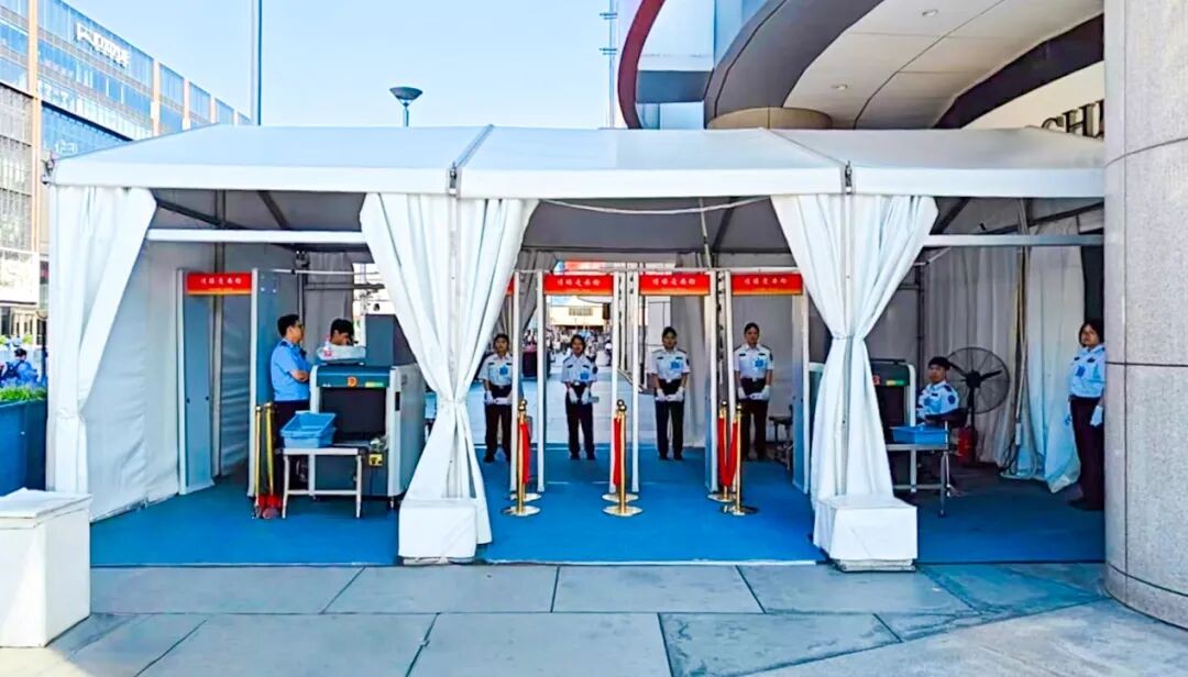 同方股份依托在大型活動安保服務領域的行業積累和經驗,為本次活動量身定制了“設備+平臺+服務”三位一體的智慧安保整體解決方案。方案涵蓋智能安檢機、安檢門、手持金屬探測器、防爆罐、炸藥探測儀、液體檢查儀、車底檢查系統、非線性節點探測器、掃雷器等近30種防爆安檢器材,以及系統集成、數據接入、機房重保等智慧安保管控平臺搭建,實現對人員、車輛、物品的全方位、高效率、智能化安檢。同方股份為本次活動不僅提供先進智能的防爆安檢設備,更承擔起從方案設計、安裝調試、操作培訓、應急響應、物流保障、電力實施的全流程服務,真正實現“交鑰匙”式保障。