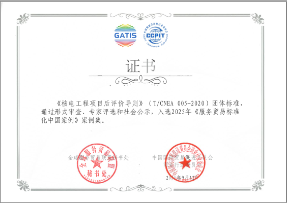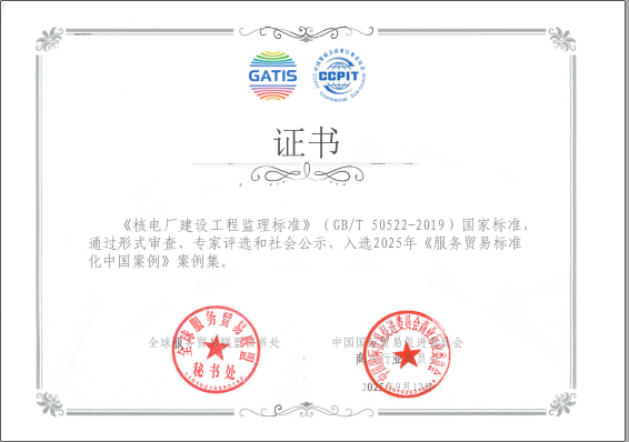 全球服務貿易聯盟秘書處聯合中國貿促會商業行業委員會發布2025年《服務貿易標準化中國案例》,中核咨詢主編的國家標準《核電廠建設工程監理標準》及團體標準《核電工程項目后評價導則》成功入選。作為核工業咨詢服務領域唯一入選單位,充分展現了中核咨詢在核工業服務貿易標準化體系建設中的行業引領地位與示范價值。