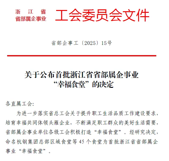 服務暖心 獲評浙江省省部屬企事業(yè)首批“幸福食堂”