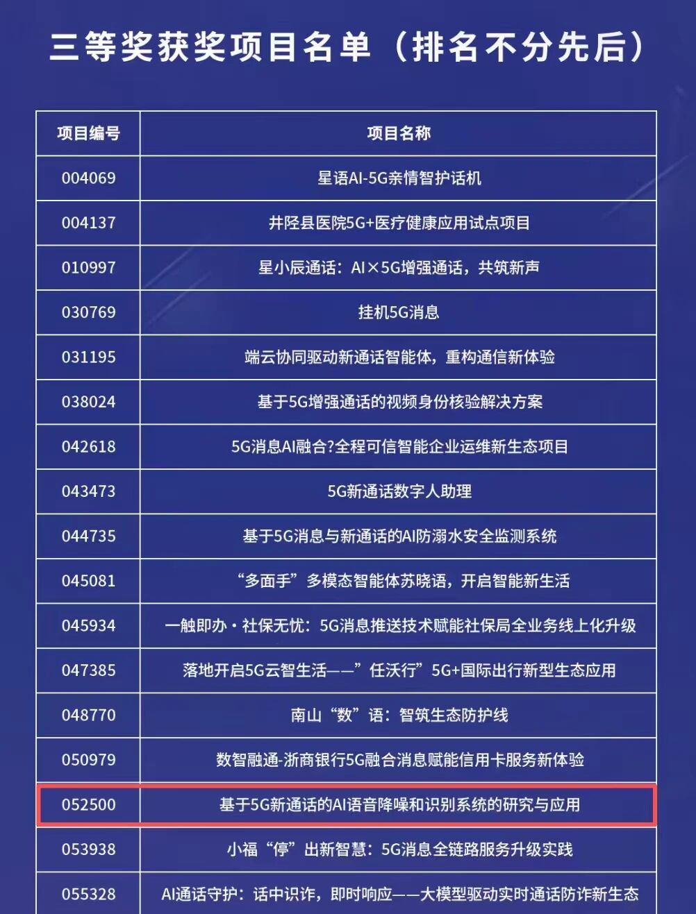 此外,福清核電參賽的另一項目《基于5G新通話的AI語音降噪和識別系統的研究與應用》,在5G消息及新通話專題賽初賽的500余個項目中榮獲“5G消息及新通話專題賽”三等獎。該課題圍繞5G新通話與智能語音降噪識別技術的深度融合,依托核電5G及IMS網絡的高可用性與穩定性,有效提升了終端語音降噪與識別能力,有力保障了工作現場通話質量。