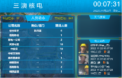 依托生物識(shí)別技術(shù),完成9萬余人實(shí)名認(rèn)證,對(duì)超齡、健康異常等人員自動(dòng)推送提醒,提升管理效率。門禁系統(tǒng)通過64臺(tái)三輥閘和226臺(tái)人臉識(shí)別設(shè)備,動(dòng)態(tài)統(tǒng)計(jì)特殊工種信息,實(shí)時(shí)監(jiān)督施工動(dòng)態(tài)。