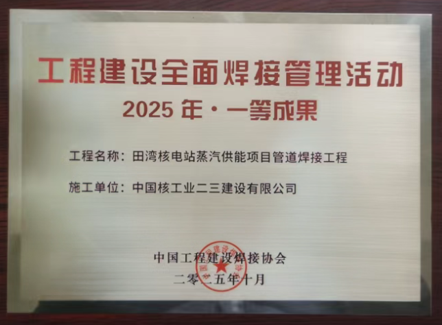 近日,2025年度工程建設全面焊接管理活動成果發布暨經驗交流會議公布了2025年度工程建設全面焊接管理活動評價結果,中核二三斬獲亮眼佳績:包括田灣核電站蒸汽供能項目管道焊接工程、霞浦項目主工藝管道焊接工程、福建漳州核電一期核島安裝工程等在內的五項工程榮膺一等成果,四項工程獲評優秀成果,共計九項工程榮獲國家級榮譽。